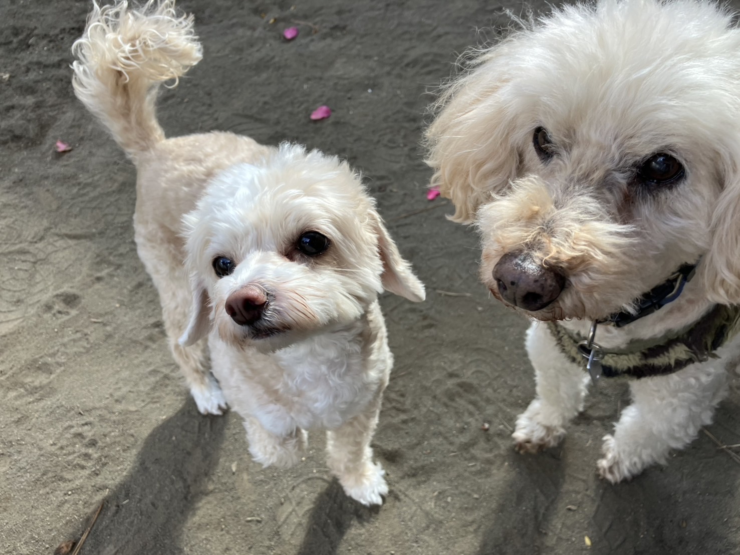 ミックスちゃんはパピーちゃんの頃からずっと来てくれている仲間、トイプーさんは毎日一緒に