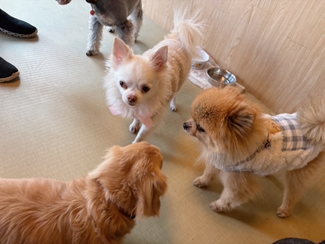 集団で過ごす時には、その場に適応するようになっている、さすがわんこたちですね。