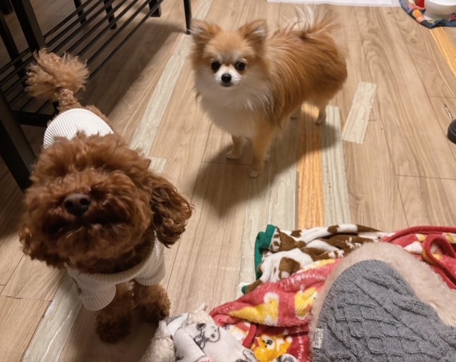 最近仲間入りしてくれたトイプーちゃん、ごはんも人間の見守り付きで食べて、先輩のポメちゃん