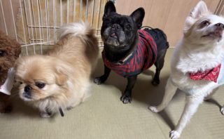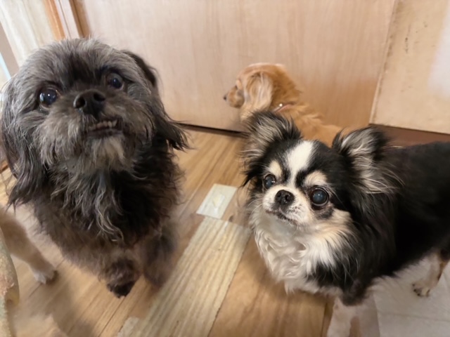 お泊り組のミックスちゃんとチワワちゃん、おはようも済んで、お互い安心チェックもしたので、