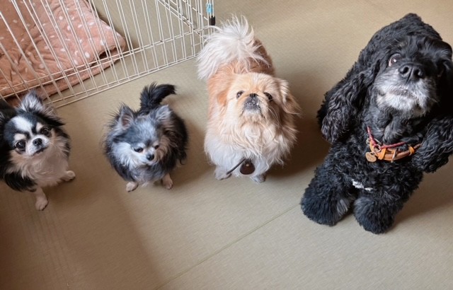 みんな、わんこのうちは慣れっこさんたちなので、とても落ち着いたムードで一緒に穏やかな時間を