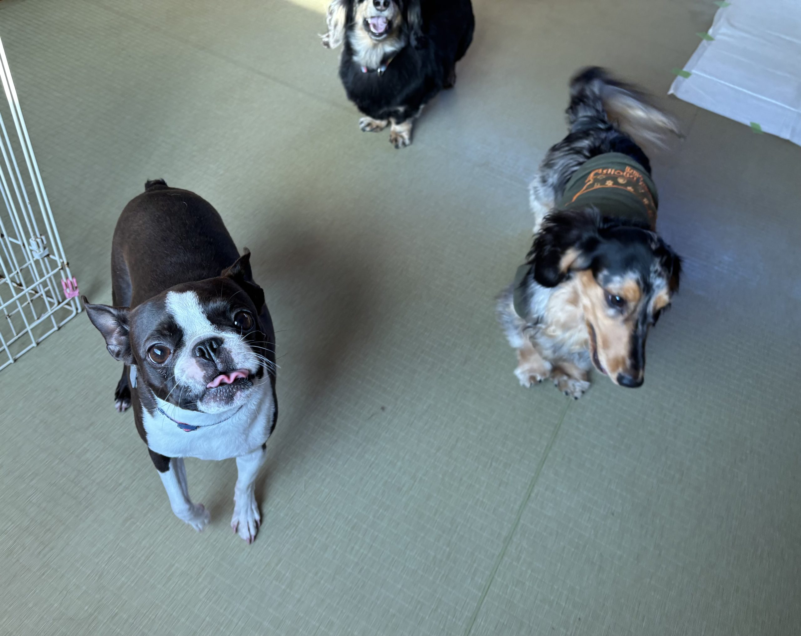 気ままに仲間たちと過ごす茅ケ崎のペットホテル、今日ものびのびハツラツに、気温もグッと上がって