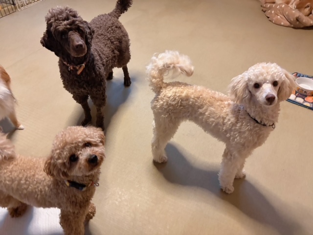 お元気チームのお三方、先ほどまでじゃれ合いっこをして遊んでおりましたが、人間が動くと
