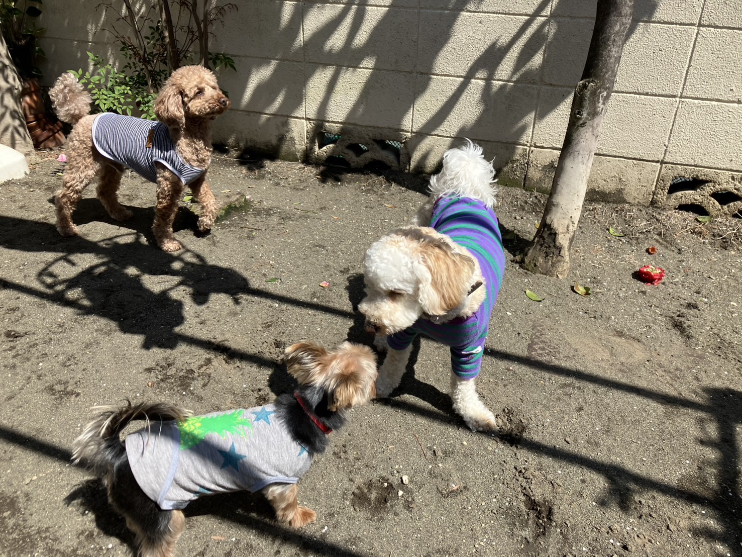 ヤングチームのミックスちゃんと、ヨーキーちゃん。さっきまで、それぞれ気ままに散策しておりましたが、