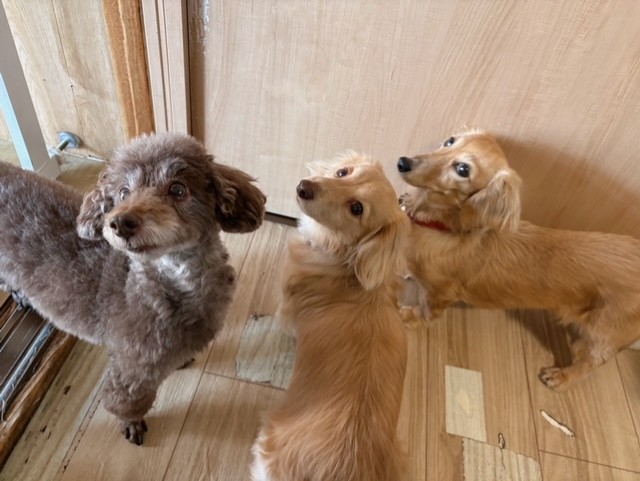 ダックスちゃん姉妹もトイプーちゃんもベテランさんで、いつもは控え目さんタイプですが、