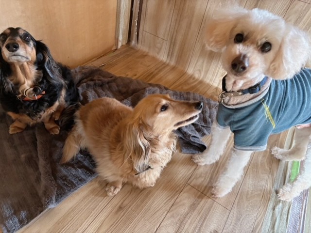 ダックスちゃん兄弟のお兄ちゃんは、お顔にチラホラ白髪も交じってきて、シニアさんらしい佇まいになって