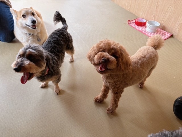 天真爛漫ミックスちゃんやベテランコーギーちゃんたちの、リラックスした過ごし方が、新入りさんや