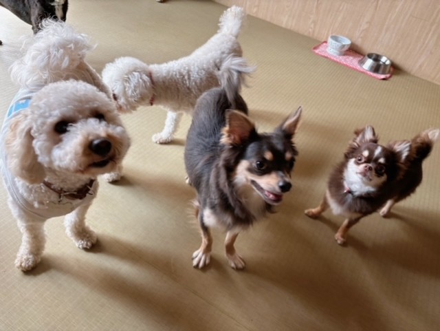新入りチワワちゃんに、通いチームのミックスちゃん、長期滞在中のチワワちゃんも、みんな一緒に