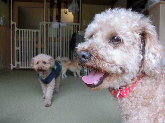 トイプーちゃん越しの、トイプーちゃん。なかなかオツな構図ですね。同じ犬種といっても、本当に