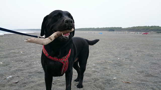 そして「帰るよ!」帰り道では、ずっと大事に木くわえながら、ゴキゲンそうにお尻フリフリして、笑顔満面で歩いてくれました。そして玄関の入り口に、大切そうに木と置いていました。さすがレトレバーです!