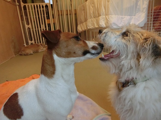 食べちゃうぞごっこ?をして遊んでいました。右の子はシニアちゃんですが、若い子たちといたせいか、動きもどことなく機敏に?なったような(笑)