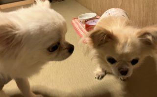 ミックスちゃんは、いつも控え目さんですが、優しいダックスちゃんとは、安心して