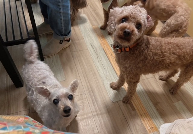 シニアトイプーちゃんは、お耳をパタパタさせながら抱っこアピール、元気100倍の