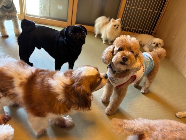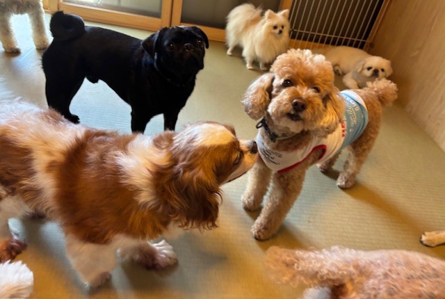 今日もいろんな顔ぶれさんが大集合、おっとりキャバちゃんはトイプーちゃんに