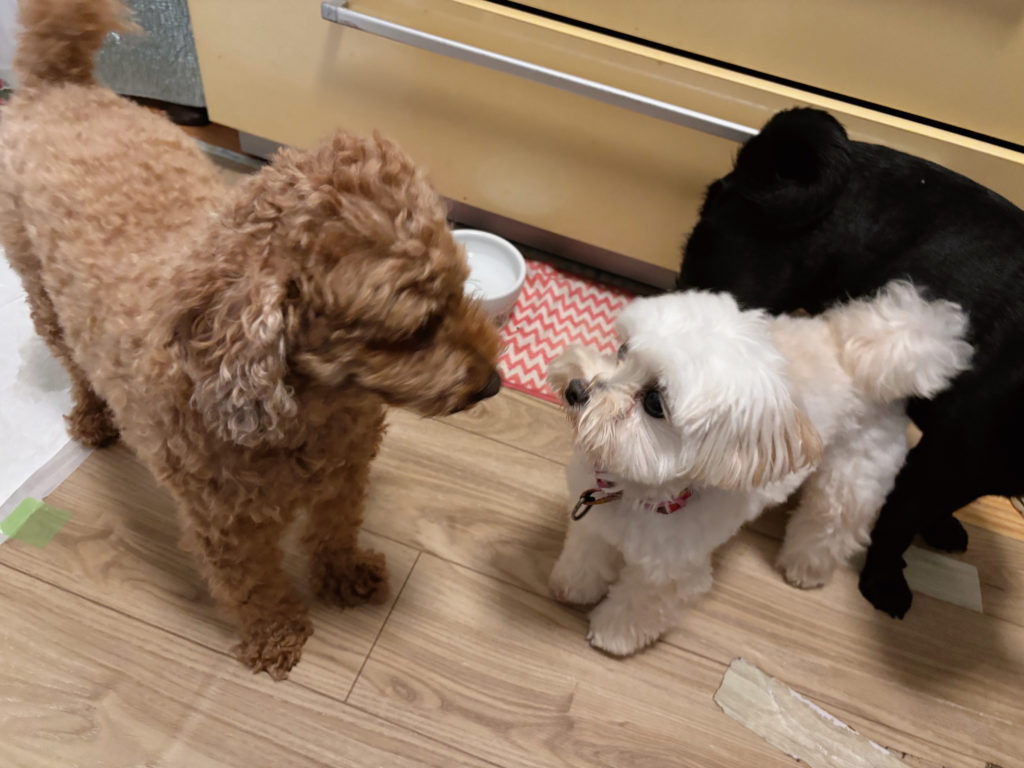 ここらでひとつ遊んでみたりする?とトイプーちゃんがお誘いをしているところ。