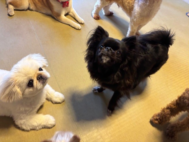 上手に取れているご様子。お隣にいるペキちゃんとは、なんだかお顔の雰囲気が似ていて、