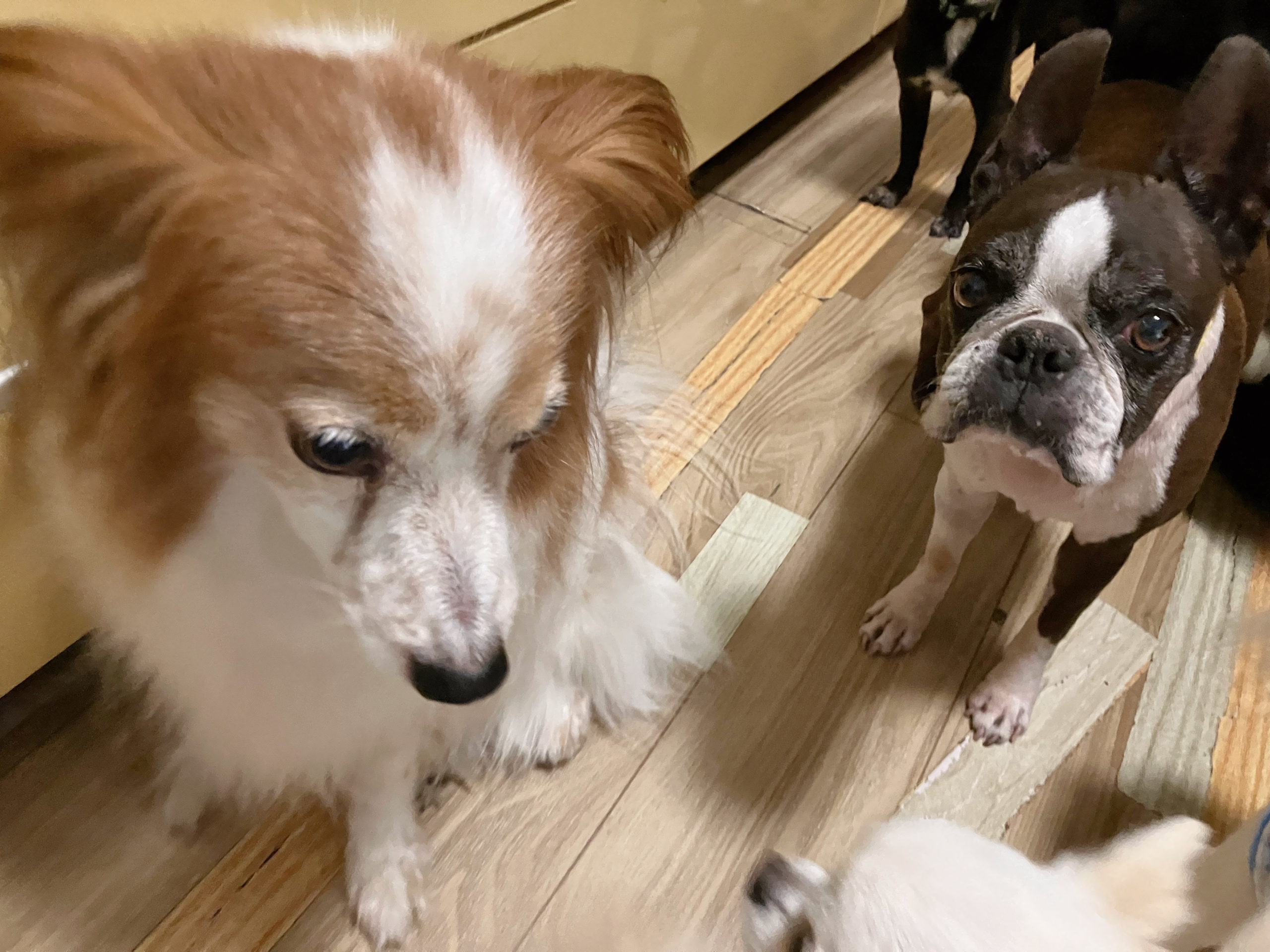少しお久しぶりに来てくれたパピヨンさん、かなり控えめさんなタイプで、最初は少し戸惑いも見せつつですが、だんだんとルームメイトたちともごあいさつしたり、お部屋を歩いたりできるようになっています。