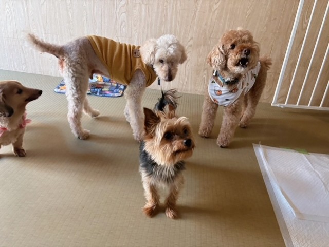 ヨーキーちゃんやトイプーちゃんたち、何となく人間の動きを観察しながら、