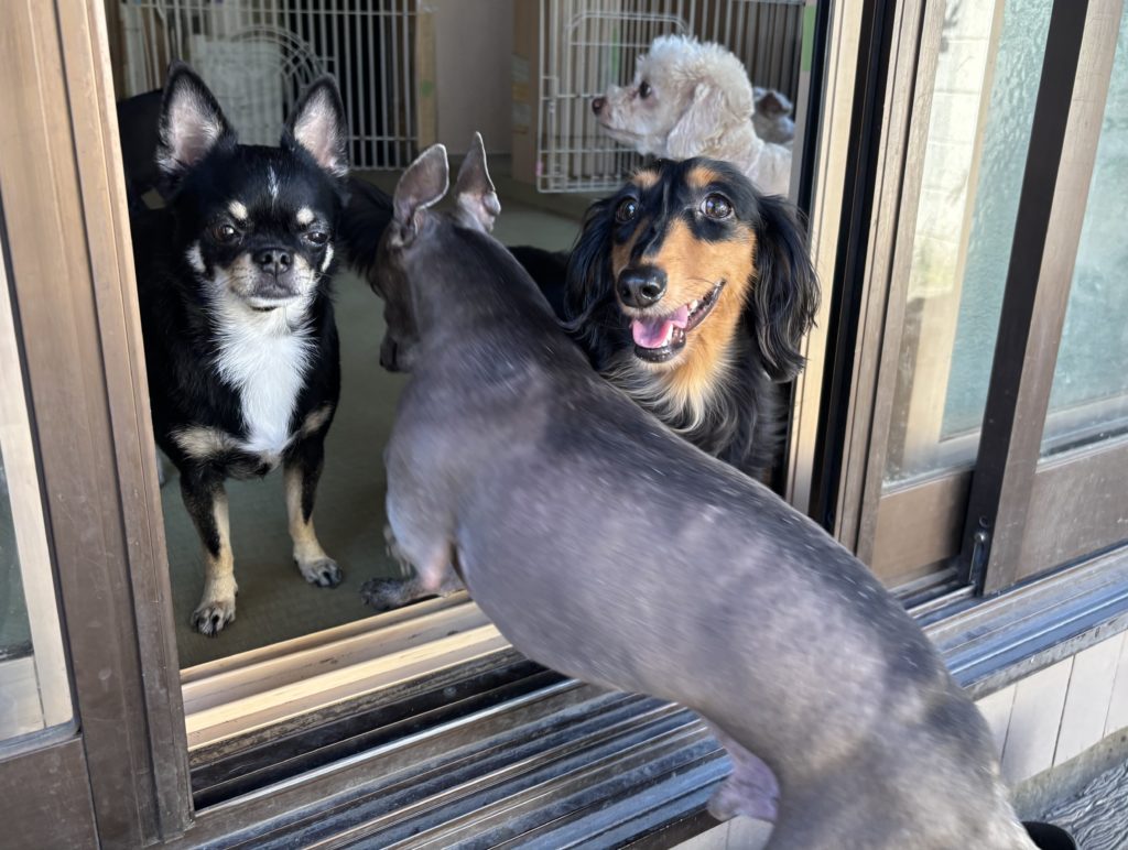 開放感のある茅ヶ崎中海岸の一軒家ペットホテル、本日はいつもの仲間たちと、ゆったりスローな1日になりそうです。