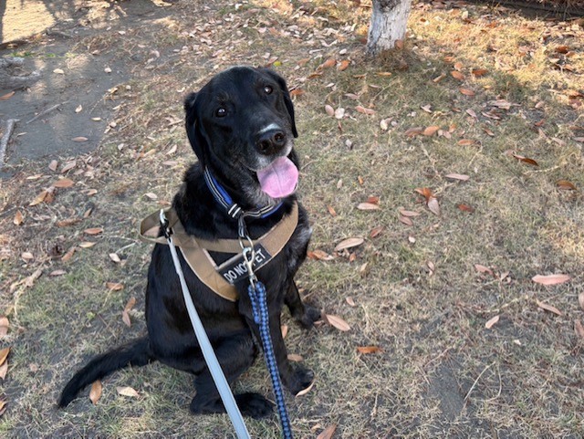 お散歩上手なラブちゃん、高台の公園でちょっとお休憩を。つぶらな瞳と立派な