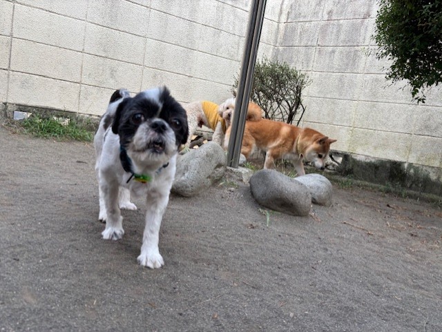 ちょっと長いお泊りをしているベテランシーズーちゃん、本日もせっせとお庭を歩いて