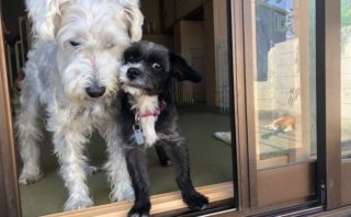 窓辺からお外チェックをするダックスちゃんとマルちゃん。お外は涼しいかどうか、先に出掛けていったみんなの様子は?などなど、慎重派なおふたりには、確認事項もたくさんあるみたい。