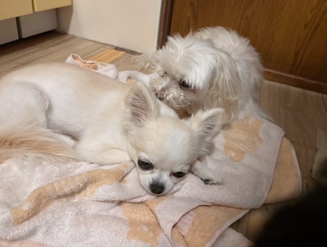 奥の子はシニアさん、チワワちゃんはまだお若いですが、とにかく寝ることが得意!