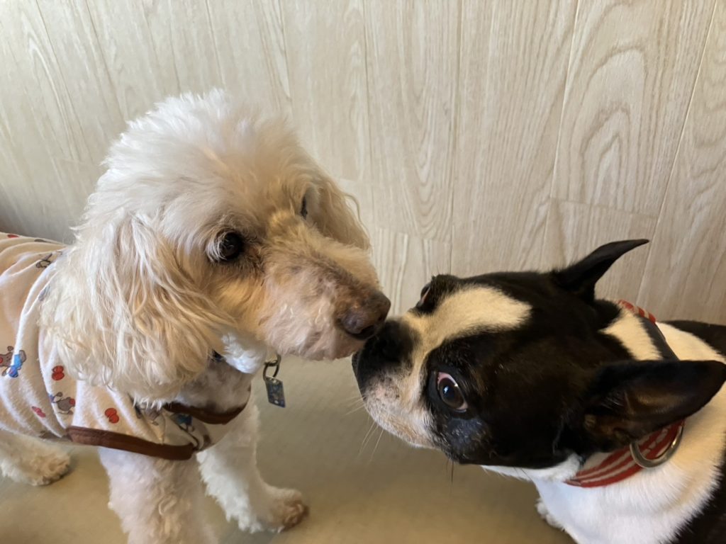 そして、優しくクンクンするボストンちゃんと、柔和な表情で受け入れるトイプーちゃんの