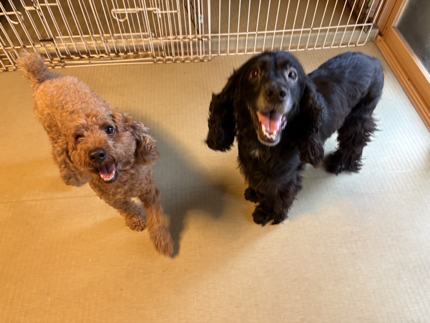 とってもキュートな笑顔を見せて、バッチリカメラ目線もくれたトイプーちゃんとコッカーちゃん。