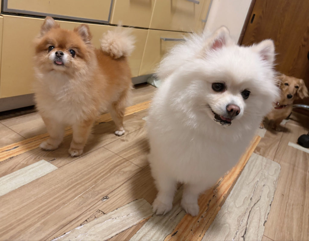 シロ茶のポメちゃんたち、お顔のタイプは違いますが、やっぱりどこか同じ空気を