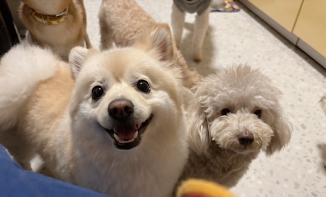 笑顔がチャーミングなポメちゃんと遊び仲間のトイプーちゃん。朝から元気な姿を見せてくれて