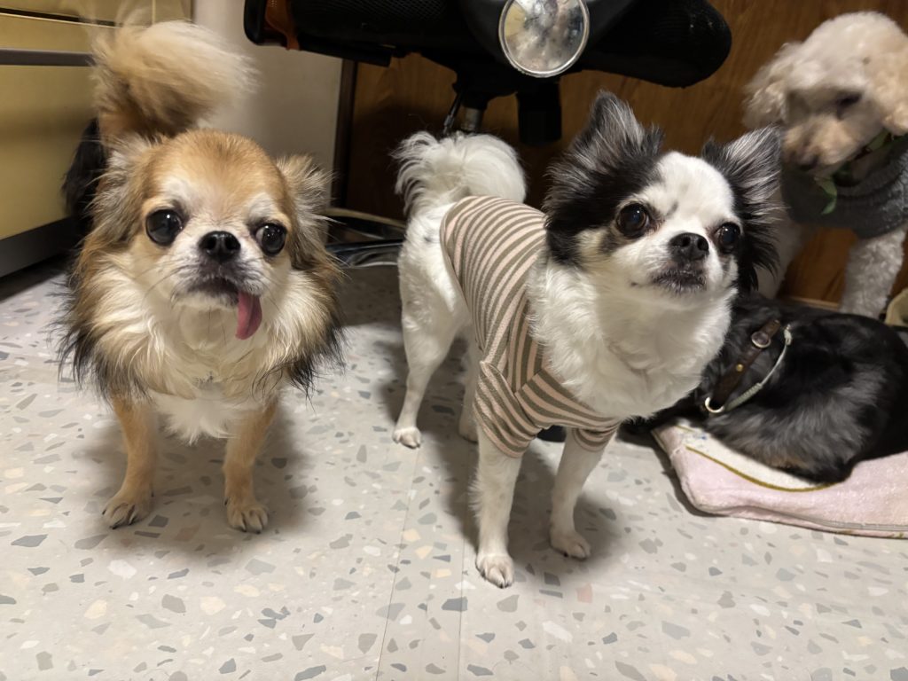 とってもキュートなチワワさんコンビ。同じ犬種ではあるけれど、お顔のタイプも、性格も、毛色毛質だって全然違う。”同じだけど同じじゃないね”ということです。人間はカテゴリーで一括りにしてしまいがちですが、よく見たり接して身近にいると、同じ犬種でも、それぞれみーんな違うという事に改めて気付かされます。