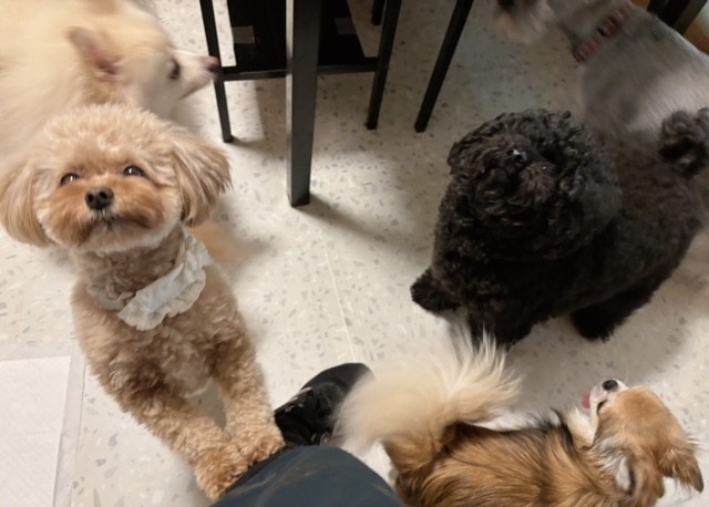 そんなことをしている間にも、隣に来た子たちと何気なくクンクンしたり、一緒になでなで