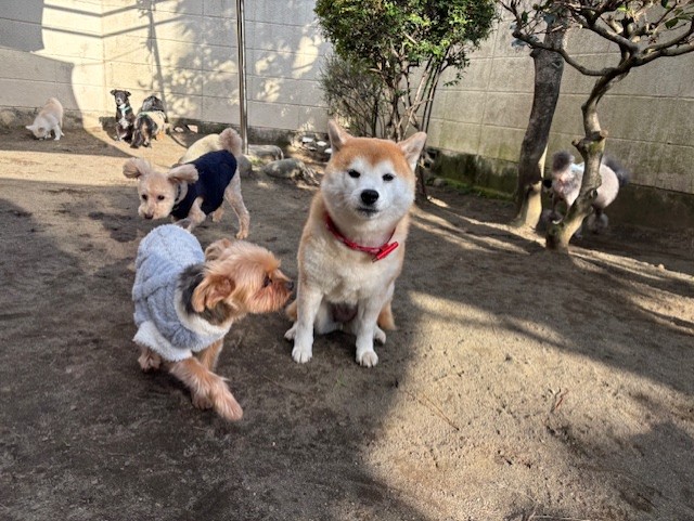 してクンクン情報収集。それぞれ思い思い自分のスタイルでお外を満喫、みんなで体を動かしたり