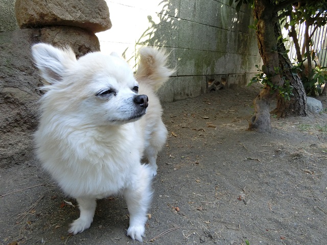 風が気持ち良いみたいで、お空を仰いでクンクン。とっても可愛いです♡