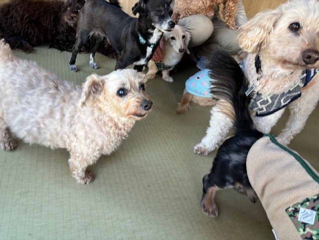 自由気ままに仲間たちと過ごす茅ケ崎のペットホテル、本日も顔なじみさんたちとわいわい