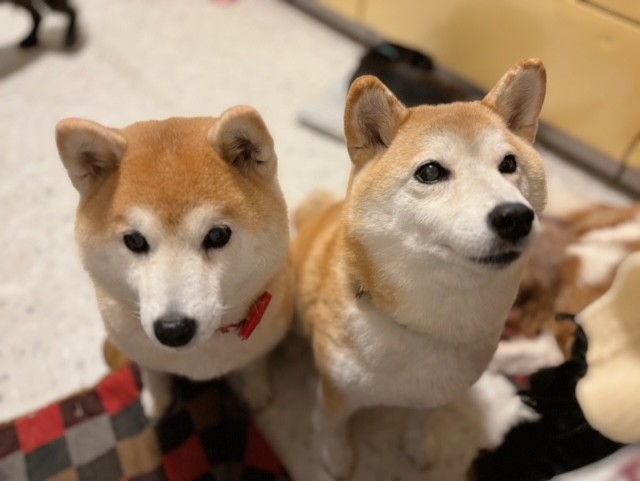 サンカク耳とつぶらな瞳、もふもふの柔らかい毛を蓄えた柴さんおふたりが、キレイに並んで