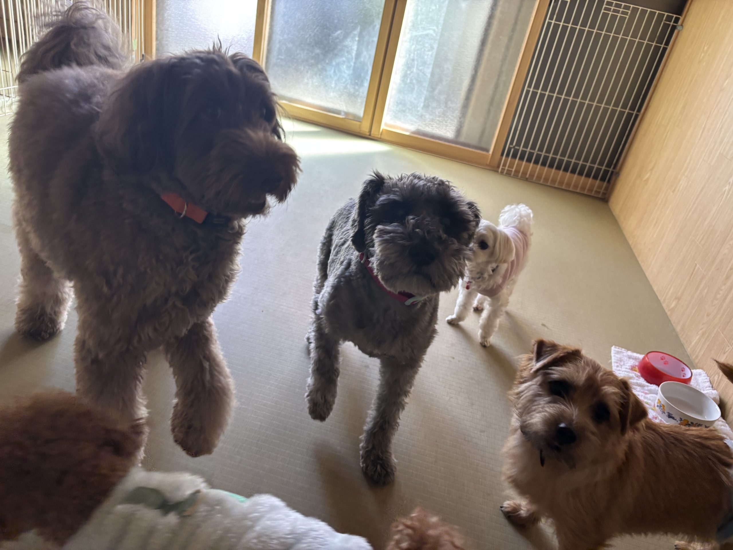茅ケ崎中海岸にある一軒家のペットホテル、本日はいつもの仲間たちとさらにまったり緩やかな一日。あったかゾーンにみんな集まって、冬ならではの一体感も味わいながら過ごしております(*^-^*)