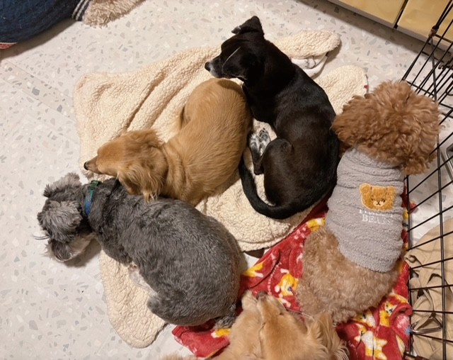 わんこたち憩いの一軒家ペットホテル、本日もみんなでぬくぬく温まりながら、まったりとした