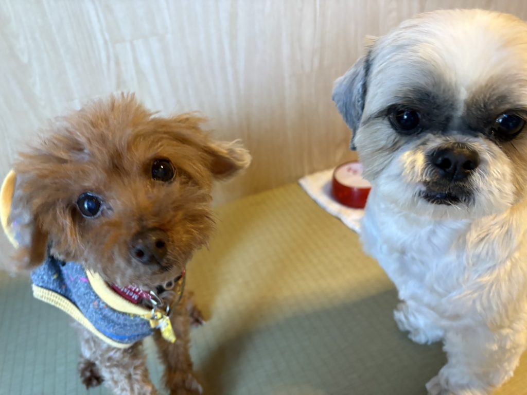 クリクリおめめで並んでいたトイプーちゃんとシーズーちゃん、さっきまでクンクンふたりでお話しをしていたみたい。人間の視線に気がつくと、ふたりでパッとこちらを見つめて、何か御用ですか?と言わんばかりの表情で(笑)これがまたとてつもなくキュートで、なんとも微笑ましい瞬間。