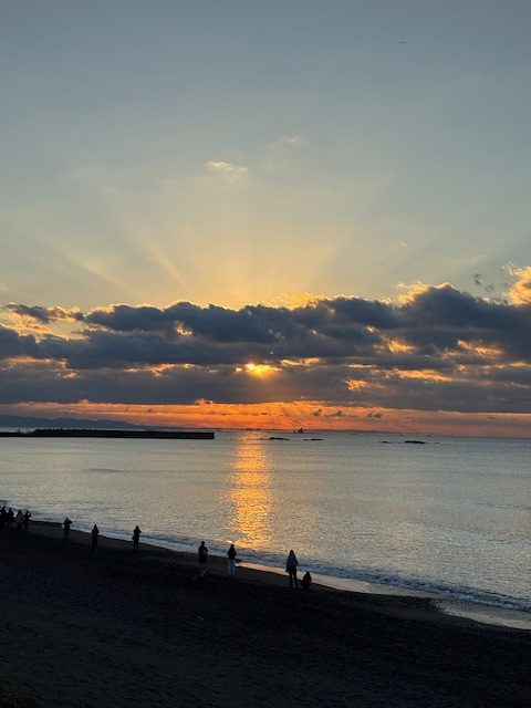 早朝サザンビーチのご来光を拝みに行ってまいりました。たくさんの人たちでにぎわっていました。 太陽の周りに雲が多かったのですが、雲の合間から差し込む日の光が、まさにご来光のように、空や水面にいくつもの光の筋が広がって、幻想的な雰囲気を醸し出して、とっても素敵でした。 ご来光の写真を添付いたしました!ぜひご覧いただけたら幸いです。