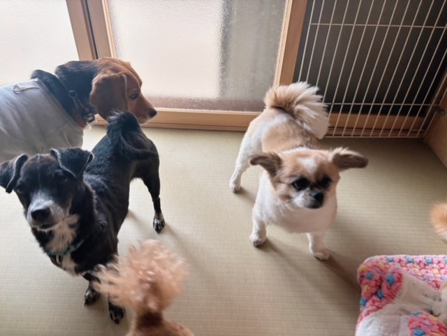 仲間たちと気ままに過ごす茅ケ崎中海岸の一軒家ペットホテル、今日も冬らしい寒さで、わんこたちもお部屋でのんびりと、が良いみたいですねー。