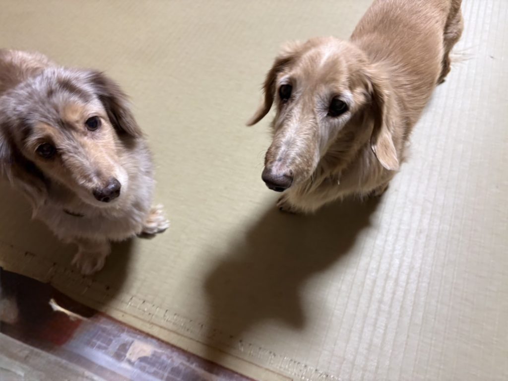 同じ”ムード”を持っているシニアダックスちゃんたち、柔らかな佇まいと優しい表情がとっても愛らしい。お互いにも、なんとなく同じ匂いを感じるのか、ごあいさつもスムーズに出来て、そばに居ても別にいいですよ、という了解もちゃんとお互い出来ている感じ。シニアさんならではのコミュニケーションの方法が、きっとあるのかもしれませんね。
