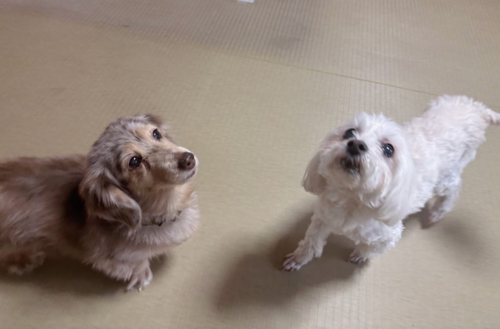 一緒にお泊りして、少し距離感も近くなり、優しくクンクンお話しもしたら、あとは人間に愛嬌たっぷり甘えるだけ(*^-^*)おふたりとも、人間のことも大好きで甘えることも大得意!
