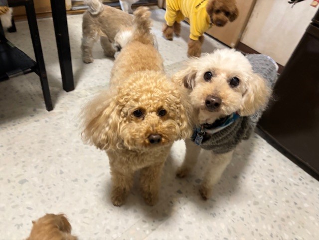 ふたりでキュートなお顔を並べて佇むトイプーちゃんコンビ。のんびり超マイペースな方たち、同じトイプーちゃんですが、お顔のタイプも体格も違っていて、それぞれに魅力があります。
