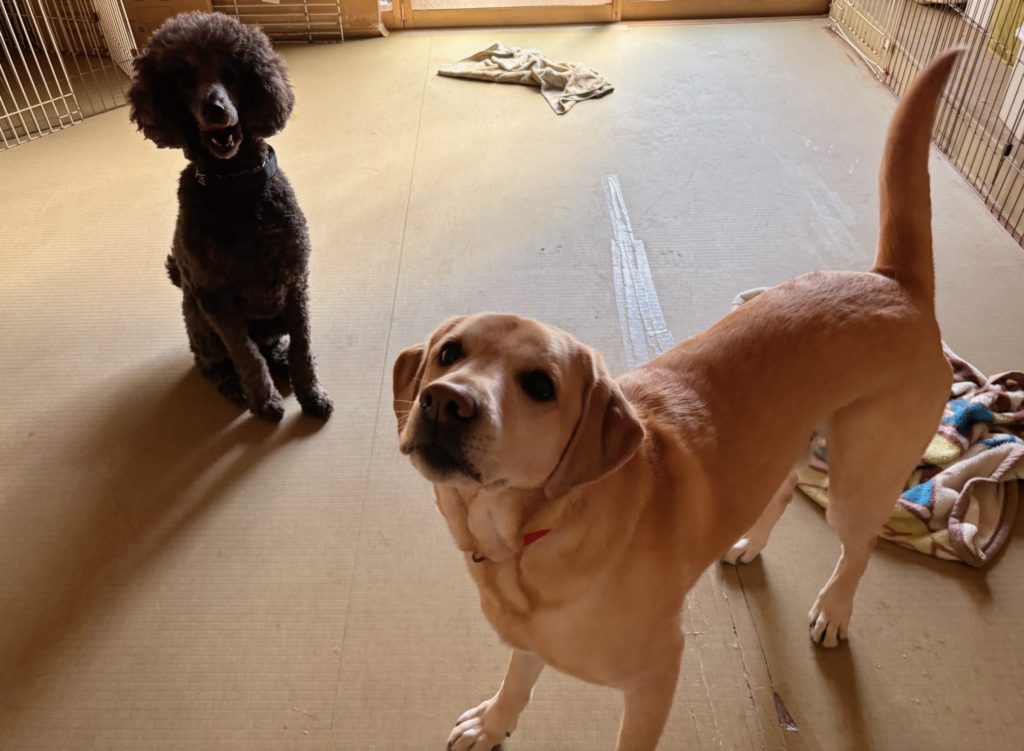 茅ヶ崎中海岸にある一軒家ペットホテル、おふたりはこのあとお庭へ元気に出かけていって、ドゥードルちゃんは先輩ラブちゃんに遊びを誘いながら、各々お外タイムでリフレッシュしておりましたー。