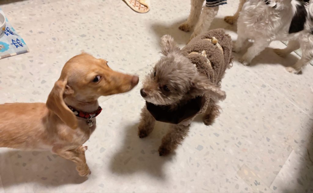 とても久しぶりに来てくれたダックスちゃんと、飛行機耳がチャーミングなトイプーちゃん。ふたりでクンクンしながらお話しをしておりました。ダックスちゃんは、数年ぶりでしたが、ちゃんと人間のことも覚えていてくれて、ふんふん何かを喋りながら喜びの舞をご披露してくれて(笑)こちらとしても嬉しいかぎり。そこへ、トコトコトイプーちゃんも興味津々でやってきて、ちいちゃい子同士上手に交流も。その光景が何とも可愛らしく、和やかで良いなあ、なんて人間が頬を緩めながら眺めているうち、お二人はもう違う子のところへ移動し、また新たな交流をしていました。お互い安心チェックができると切り替えも早く、さすが犬ならではだな、と改めて感心するのです。それぞれ、いろんな出会いを通じて、ちょっぴり豊かなひとときを過ごしてくれたら何よりです。
