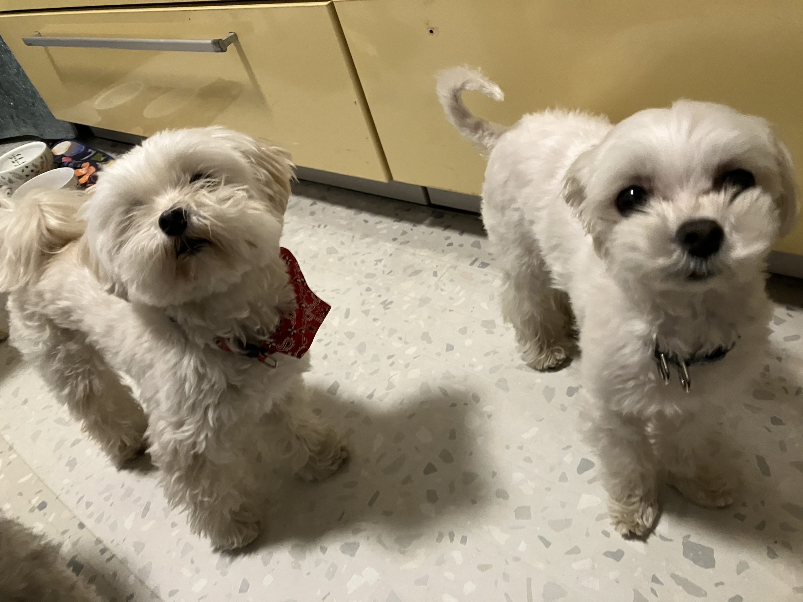 一方、右のマルチーズちゃんは、最近仲間入りしてくれた新人さん、まだまだ戸惑いもありますが、少しずつわんこのうちムードに慣れてくれると良いなあと思っているところ。お二人とも、どこか同じ匂いを感じるのか、ごあいさつも割とスムーズに出来て、距離感が近くても大丈夫。先輩がオープンなムードを醸し出してくれている、というところもかなり大きいかもしれません。わんこどうしでしか伝わらない、不思議なコミュニケーションがきっとあるのでしょうね。