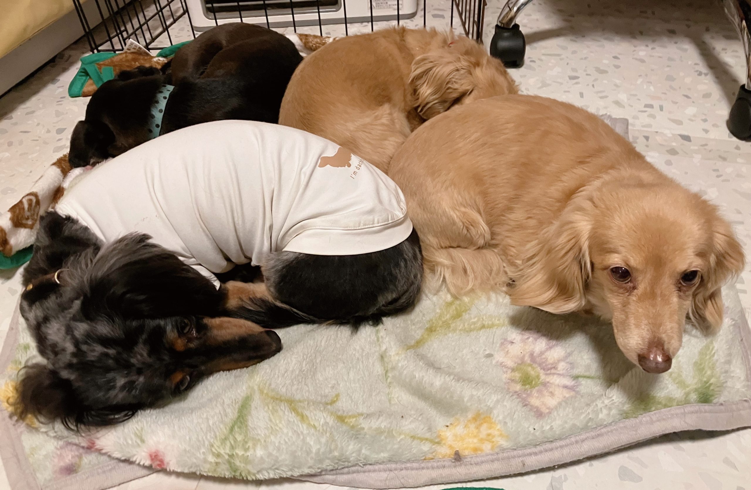 ブランケットを上手にシェアして寝ているお馴染みのお昼寝仲間たち。よくもまあ、こんなにお見事に収まることができるなあ、と人間は毎回感心しながら眺めております。