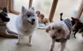 その周りでも、人間のお膝を狙っている子たちや、どこでくつろごうかとウロウロしている子、すでに自分のポジションを確保している子もいたり。みんな各々ちゃんと過ごし方を心得ていて、お互いにも上手に距離を取りながらいる光景は、なんだか当たり前のように見えてしまいますが、実はとても素晴らしいこと。群れのチカラというか、犬ならではの勘が働いているようですね。